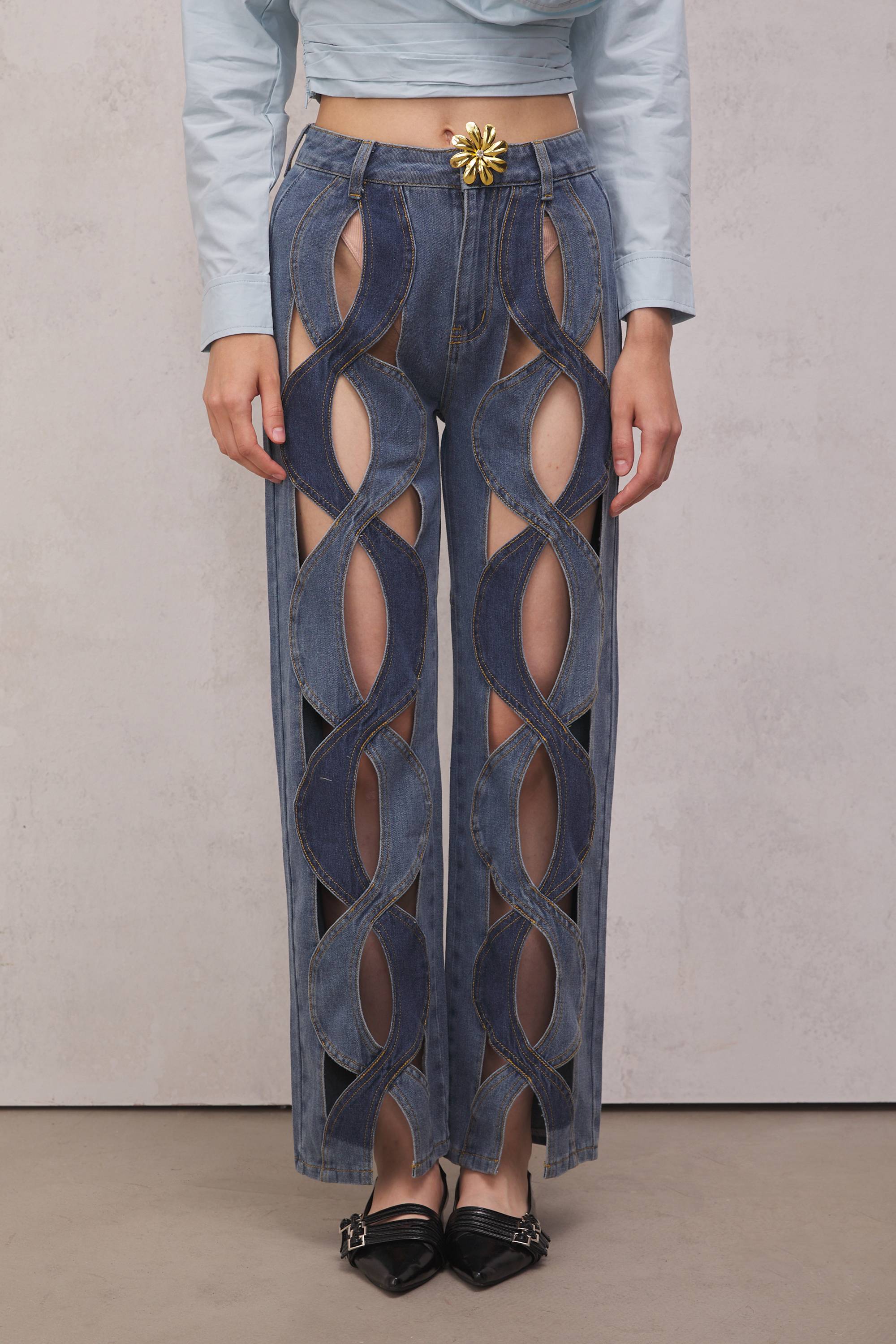 Discover the Abigail Hollow Denim Jeans. Featuring a premium quality hollow denim fabric. these jeans are incredibly comfortable and stylish. The blue hue is perfect for any look while providing all day comfort. A must-have for any wardrobe.