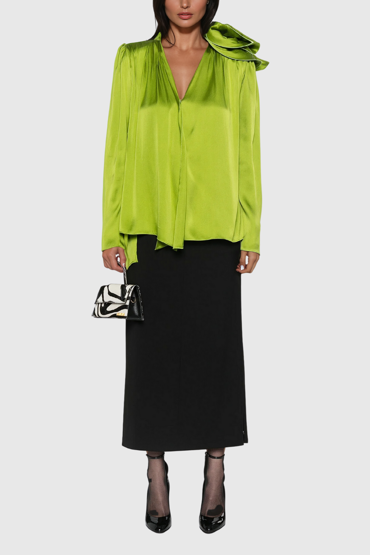 Expertly crafted with a plunging neckline and lace-up detailing. the Afanasi Flower Plunge Lace Up Satin Top offers a seductive yet sophisticated look. Made with high-quality satin. this top is both comfortable and luxurious. making it perfect for a night out or a special occasion.