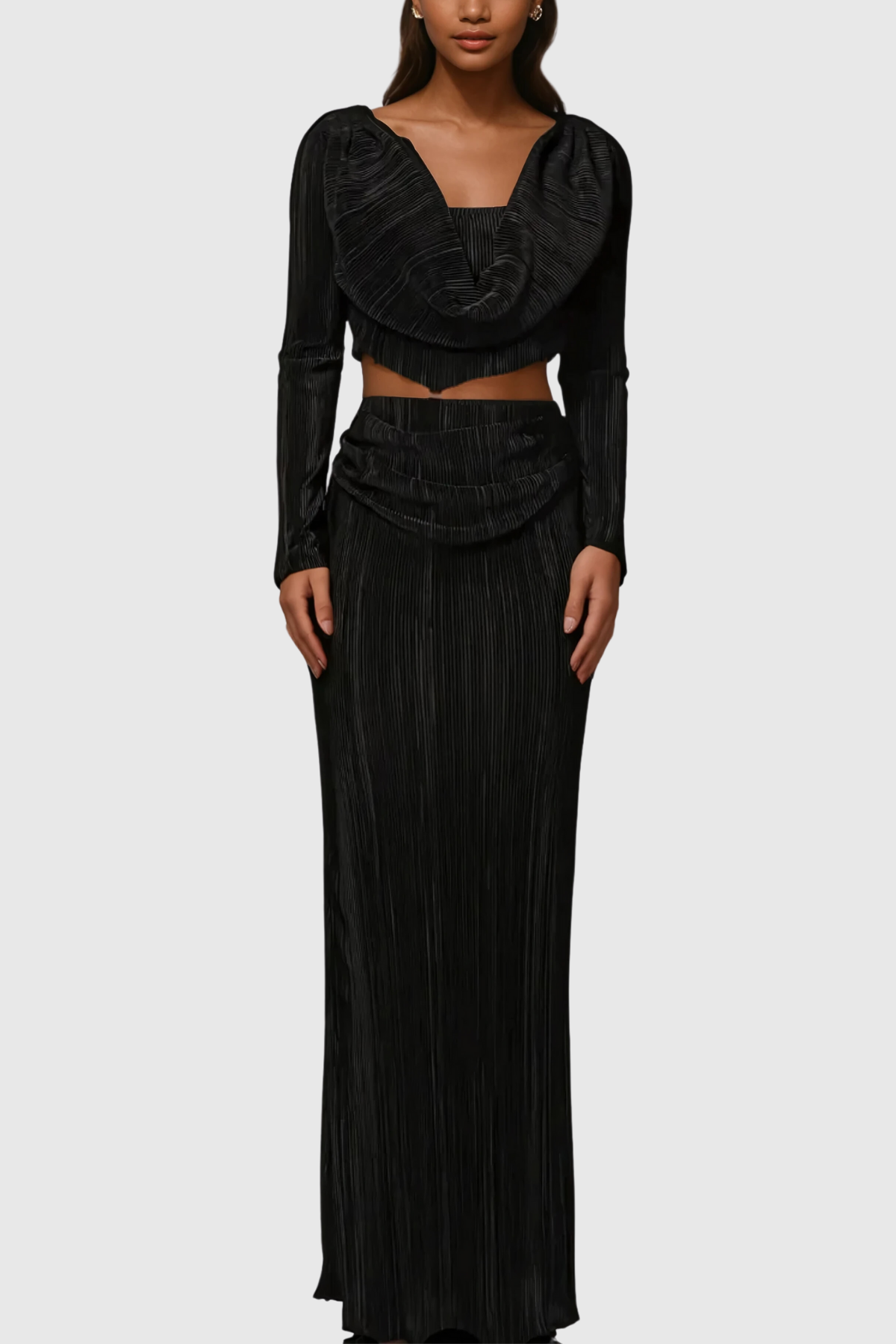 Step into style with the Alexei Cowl Neck Ruch Pants Set in Black. The cowl neck design adds a touch of sophistication. while the ruched pants provide a flattering fit. This set is perfect for any occasion and will have you looking and feeling confident.