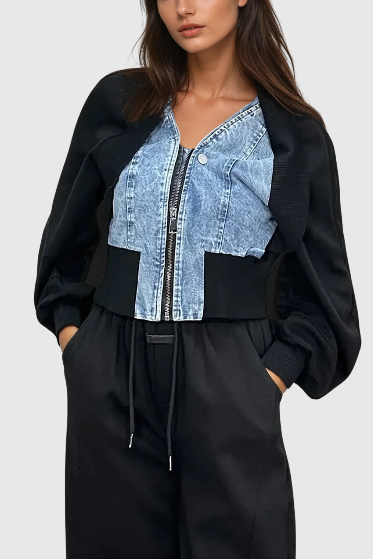 The Amabel Deconstruct Denim Short Jacket is expertly crafted with a deconstructed design for a modern. edgy look. Made with durable denim material. this jacket offers both style and functionality. Perfect for any fashion-forward individual looking to add a unique piece to their wardrobe.