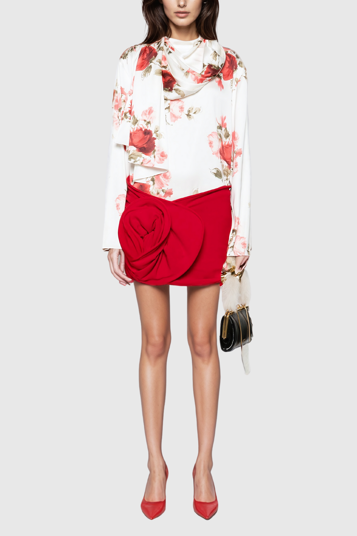 This Ballantine Ruch Flower Bodycon Short Skirt combines delicate floral ruch detailing with a flattering bodycon silhouette for a feminine and stylish look. Made with high-quality materials. the skirt is comfortable to wear and perfect for any occasion. Elevate your wardrobe with this elegant piece.
