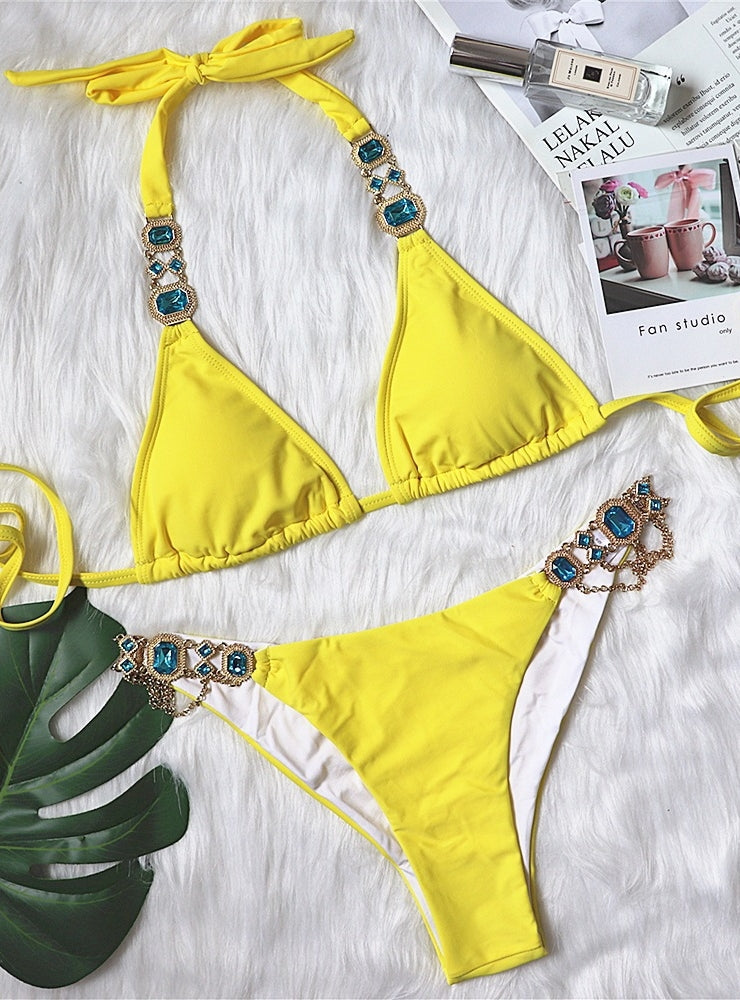 Crystal Diamond Chain Gilded Snake Strap Bikini