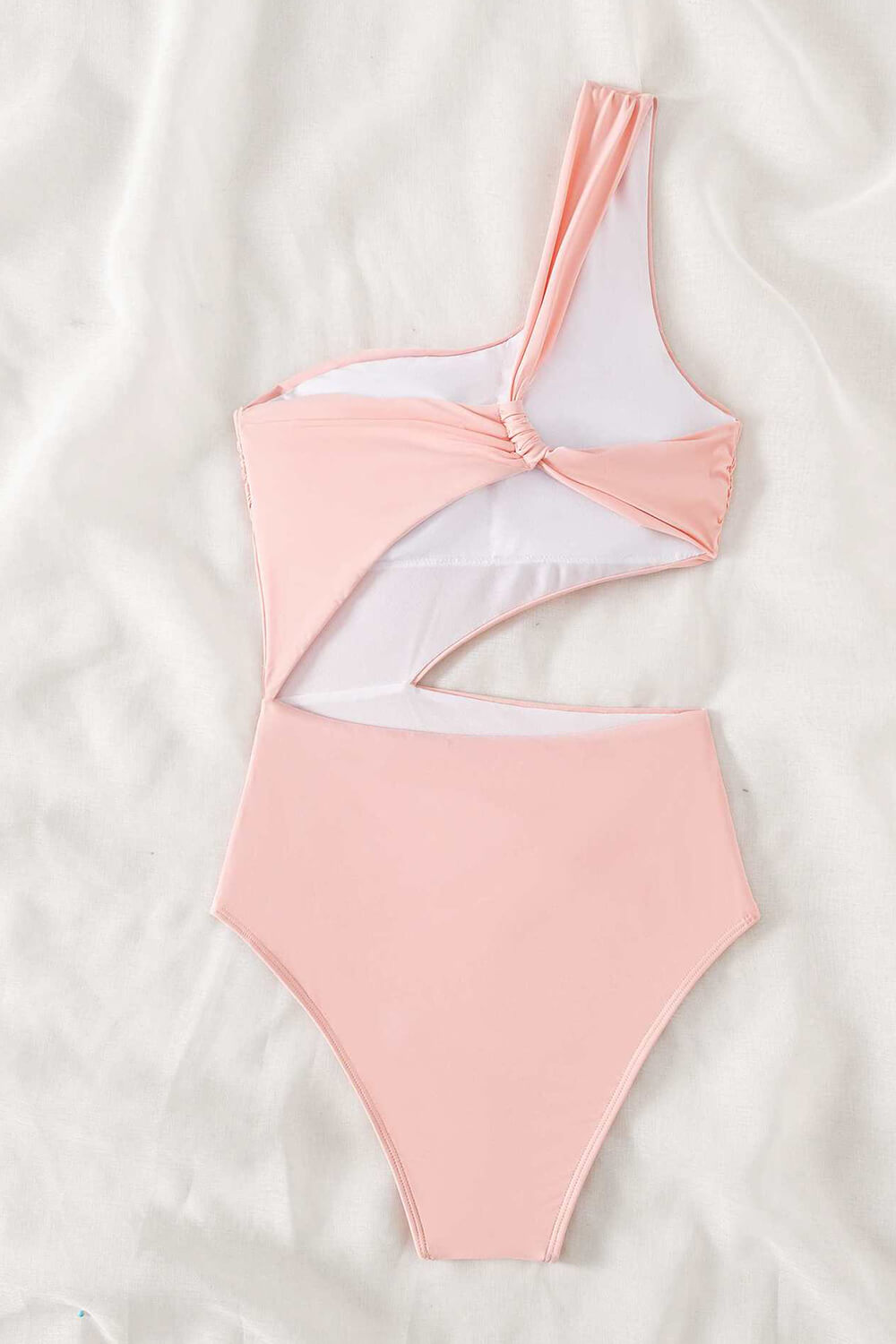 Cut-Out One-Shoulder One Piece Swimsuit - Black/Red/Petrol/Lightpink