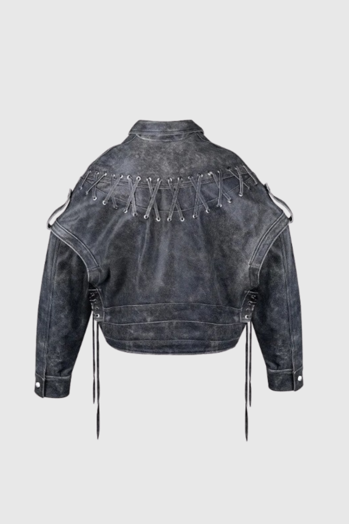 Take on any challenge with the Destiny Lace Up Asymmetric Leather Jacket. Made with high-quality leather and featuring a bold lace-up design. this jacket exudes a daring and adventurous attitude. Be effortlessly stylish while taking risks in this edgy and unique jacket.