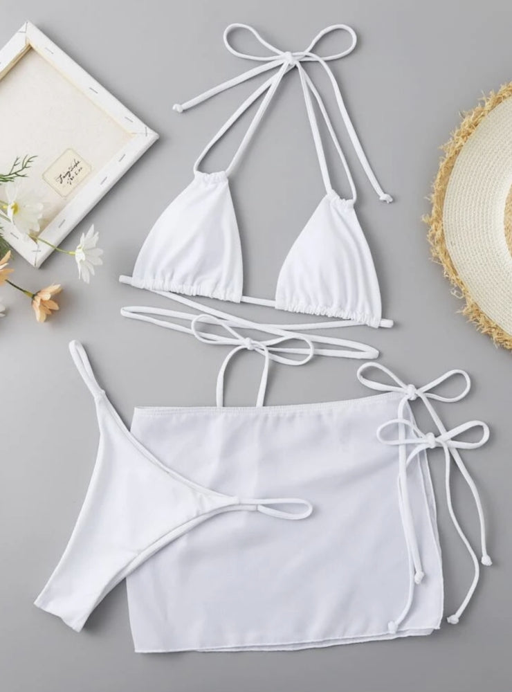 Drawstring Strap Solid Color Three-piece Bikini