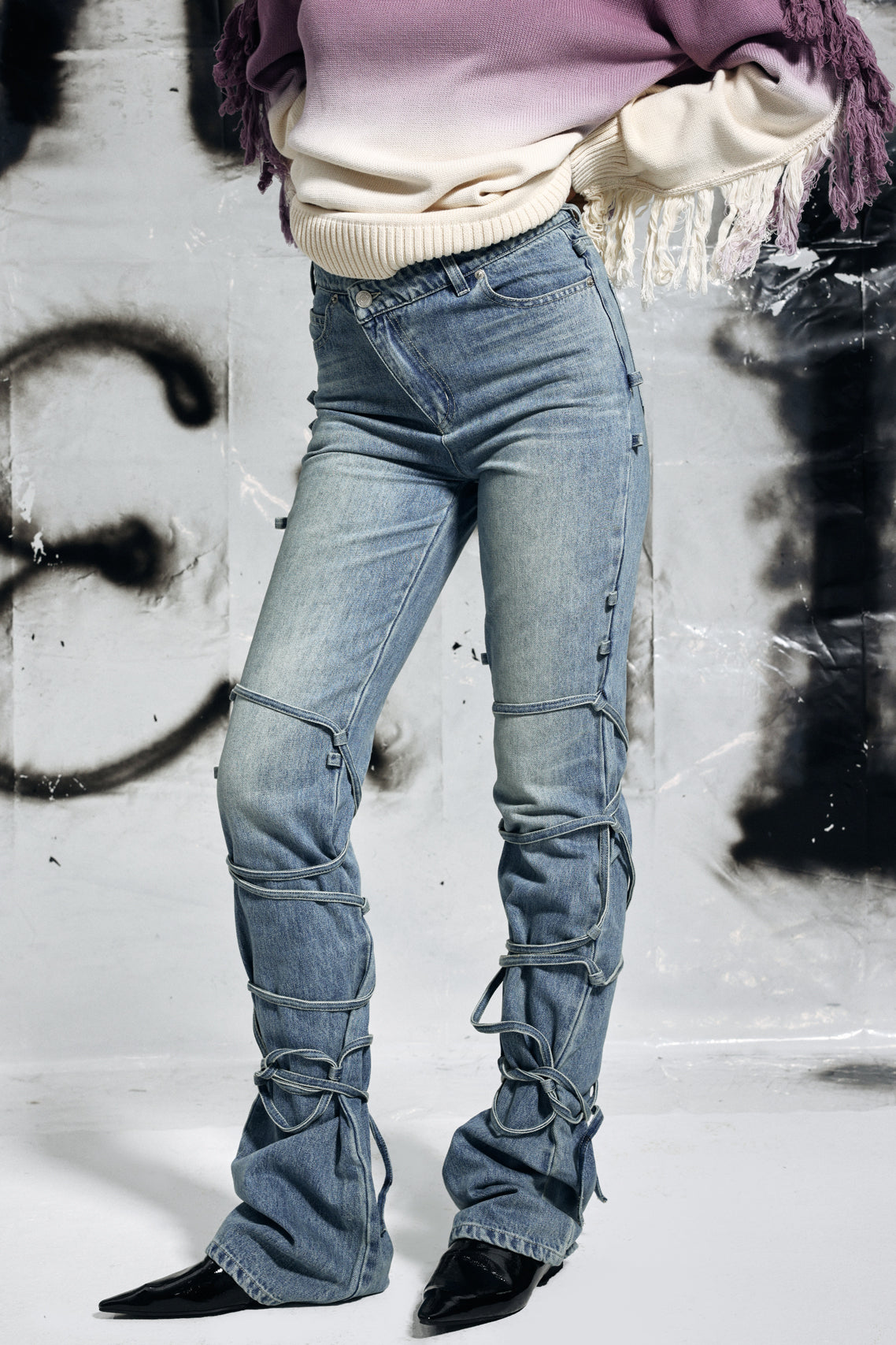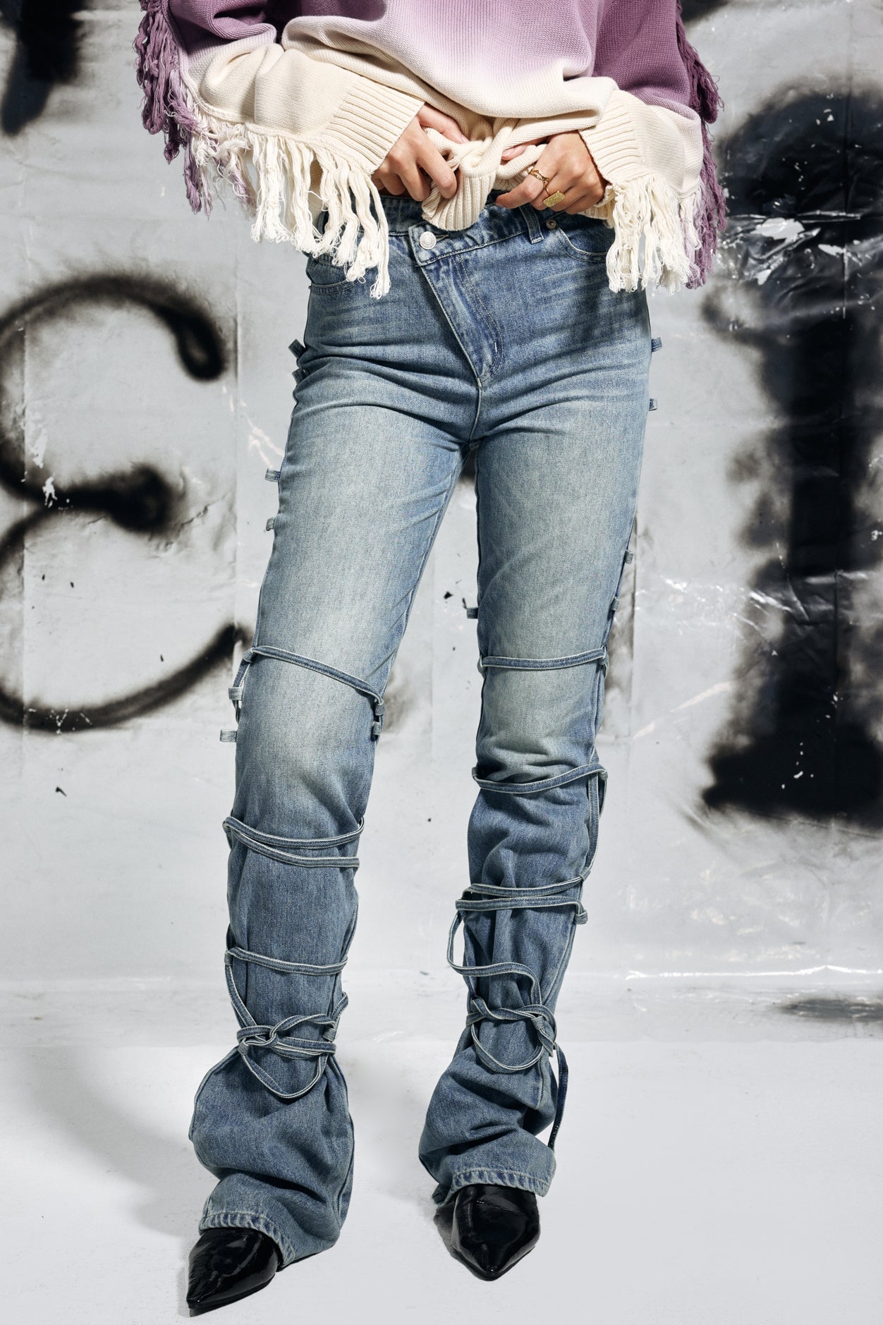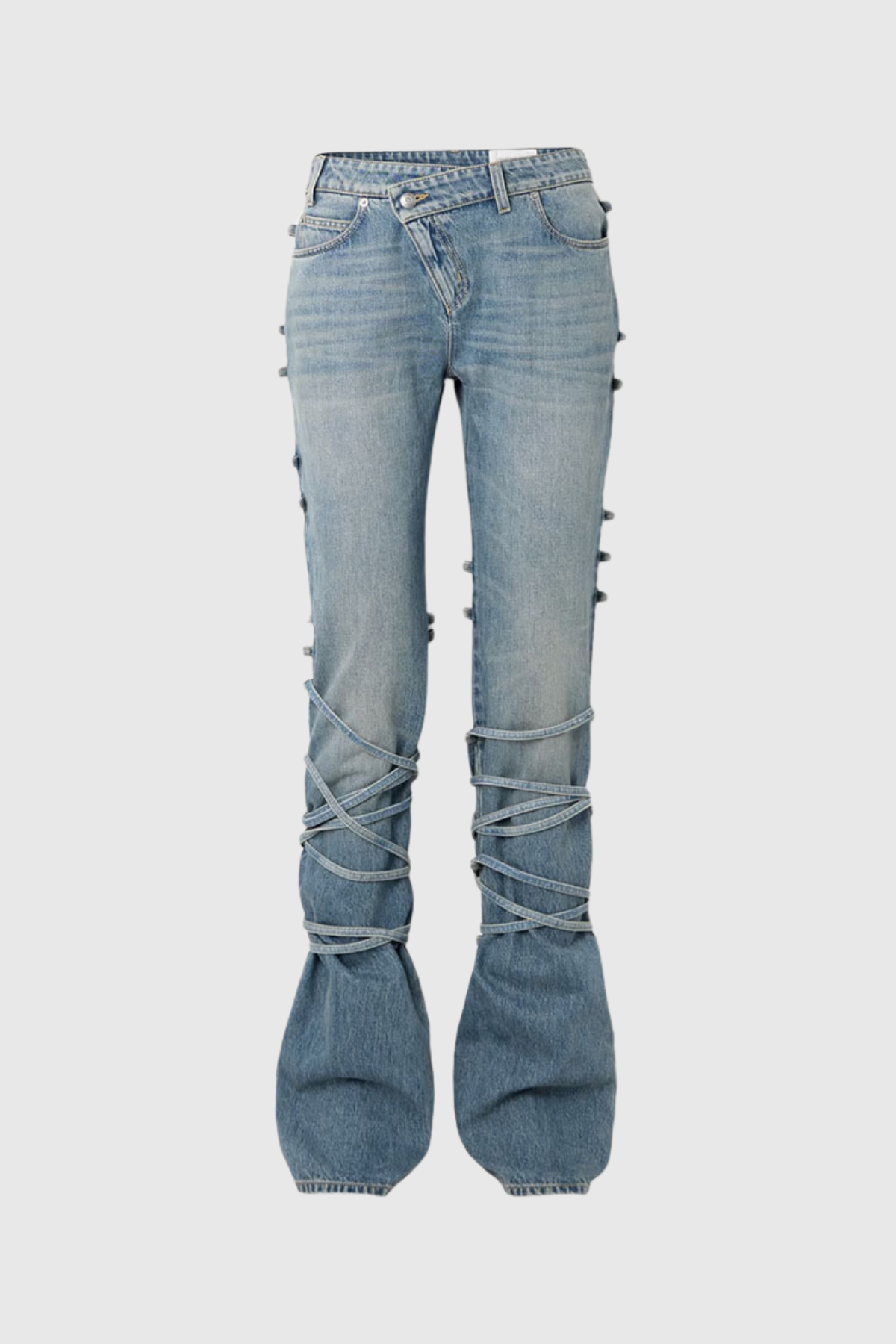 Discover the ultimate combination of style and comfort with Emryn Lace Up Jeans. Featuring a trendy lace up design. these jeans offer a modern twist on a classic look. Crafted with high-quality material. they provide the perfect fit for any body type. Upgrade your wardrobe today!