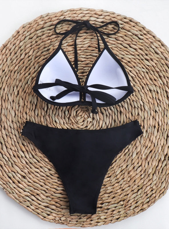 Classics never go out of style. and neither will the Lilacoo Black Triangle Bikini set. This timeless triangle bikini top features an updated ribbed fabrication and adjustable ties at the neck and back for a comfortable fit. Complete the look with the Bikini Bottom. a classic low-rise bikini bottom updated with a ribbed fabrication. a high-cut leg. adjustable tie sides. and cheeky seat coverage. This ultra-cute and comfy bikini bottom is perfect for a day at the beach or lounging by the pool.Pattern style: sexy