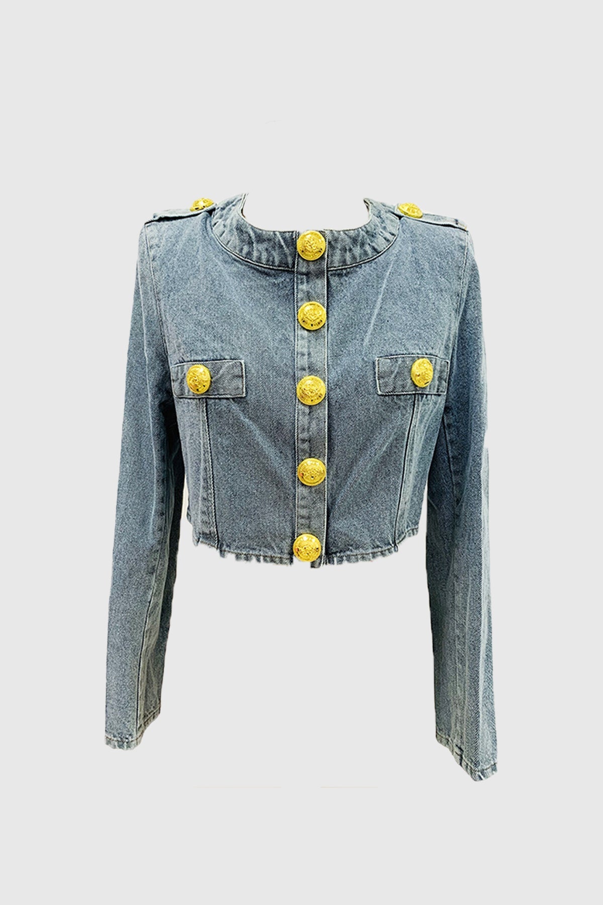 Take on any challenge in style with the Isabel Cropped Denim Top. This bold and blue jacket features a cropped design. perfect for showing off your adventurous side. Made with sturdy denim. it's sure to keep up with all of your daring endeavors. Don't be afraid to make a statement with this must-have piece!