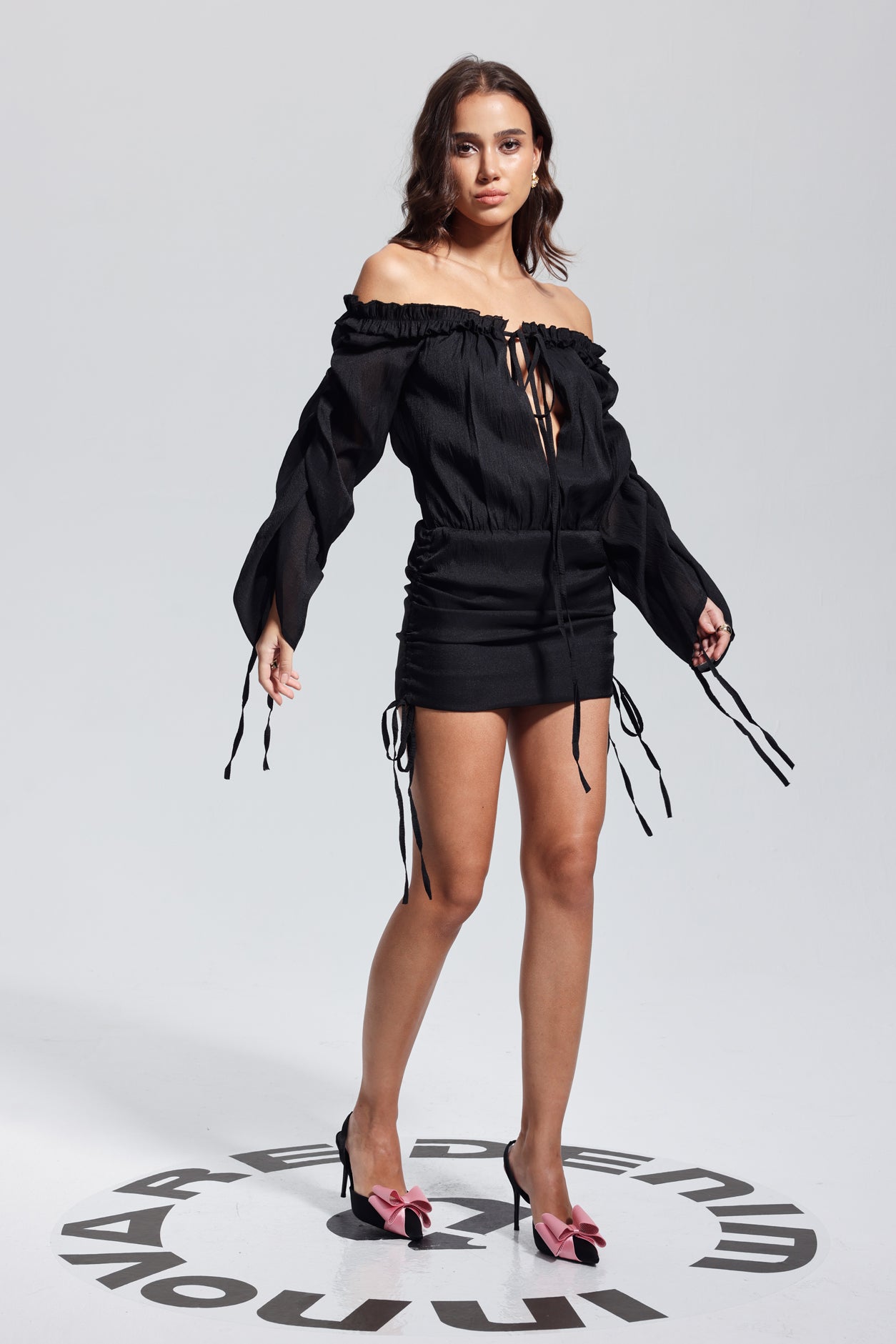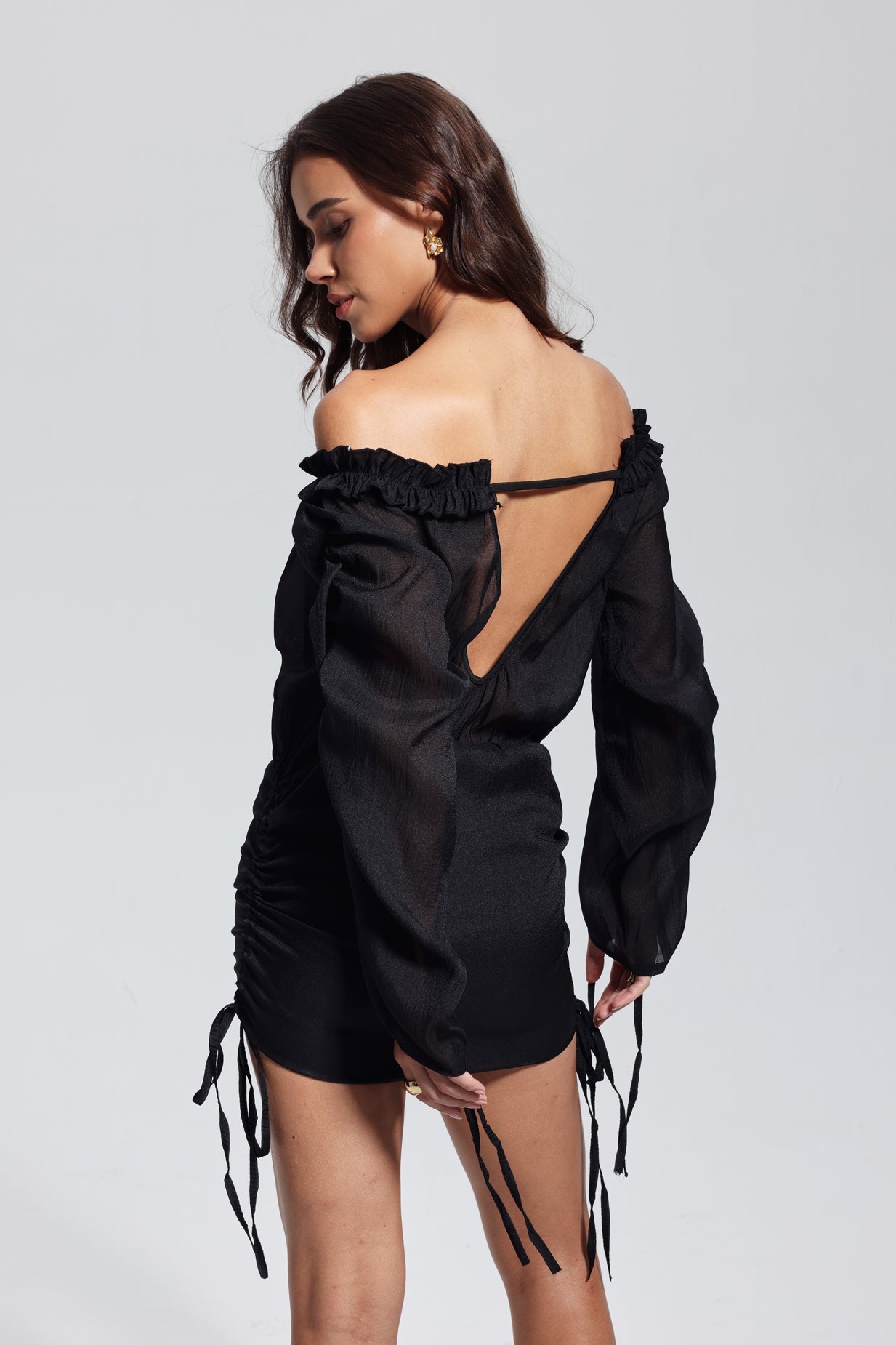 Expertly crafted for a sleek and sexy look. the Isadora Mesh Backless Lace Up Mini Dress is a must-have in your wardrobe. The mesh fabric adds a touch of sensuality while the backless design and lace-up detail create an alluring silhouette. Perfect for a night out. this dress will make you stand out in any crowd.