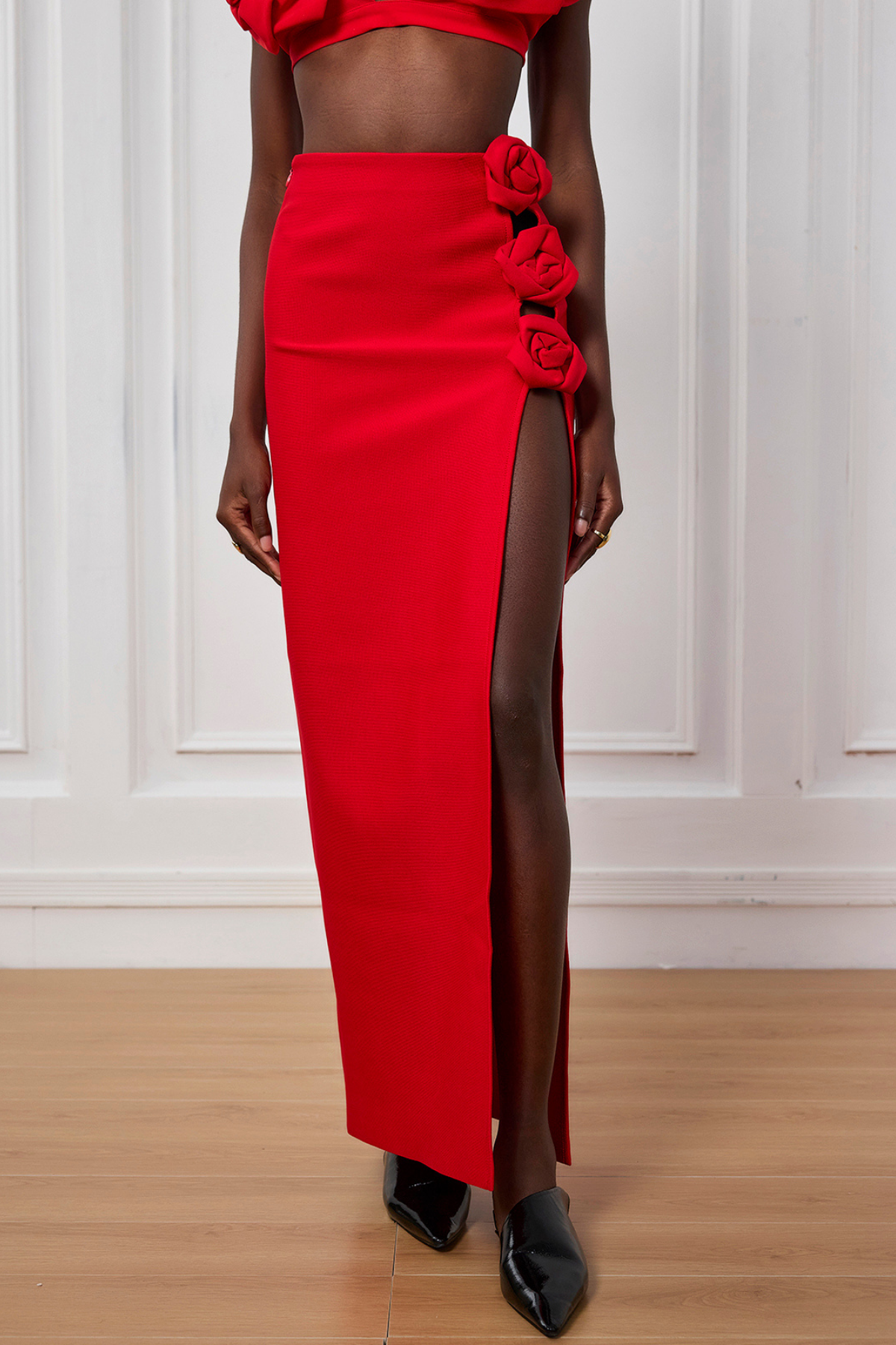 Effortlessly elevate your style with our Jazmine Cutout Split Flower Maxi Skirt. Boasting intricate floral cutouts and a dramatic side split. this skirt is perfect for making a statement at any event. Crafted with a comfortable and lightweight fabric. it offers a flattering fit with a touch of elegance.