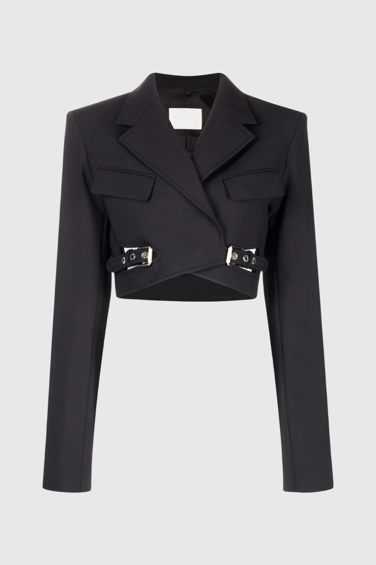 Introducing the Katie Hollow Short Blazer In Black - a versatile and stylish addition to any wardrobe. With its unique hollow design. this blazer offers a sleek and modern look. Made with high-quality materials. it provides a comfortable fit and can easily be dressed up or down. Elevate your fashion game with this must-have blazer.