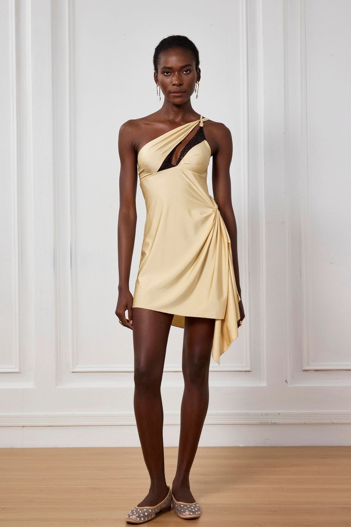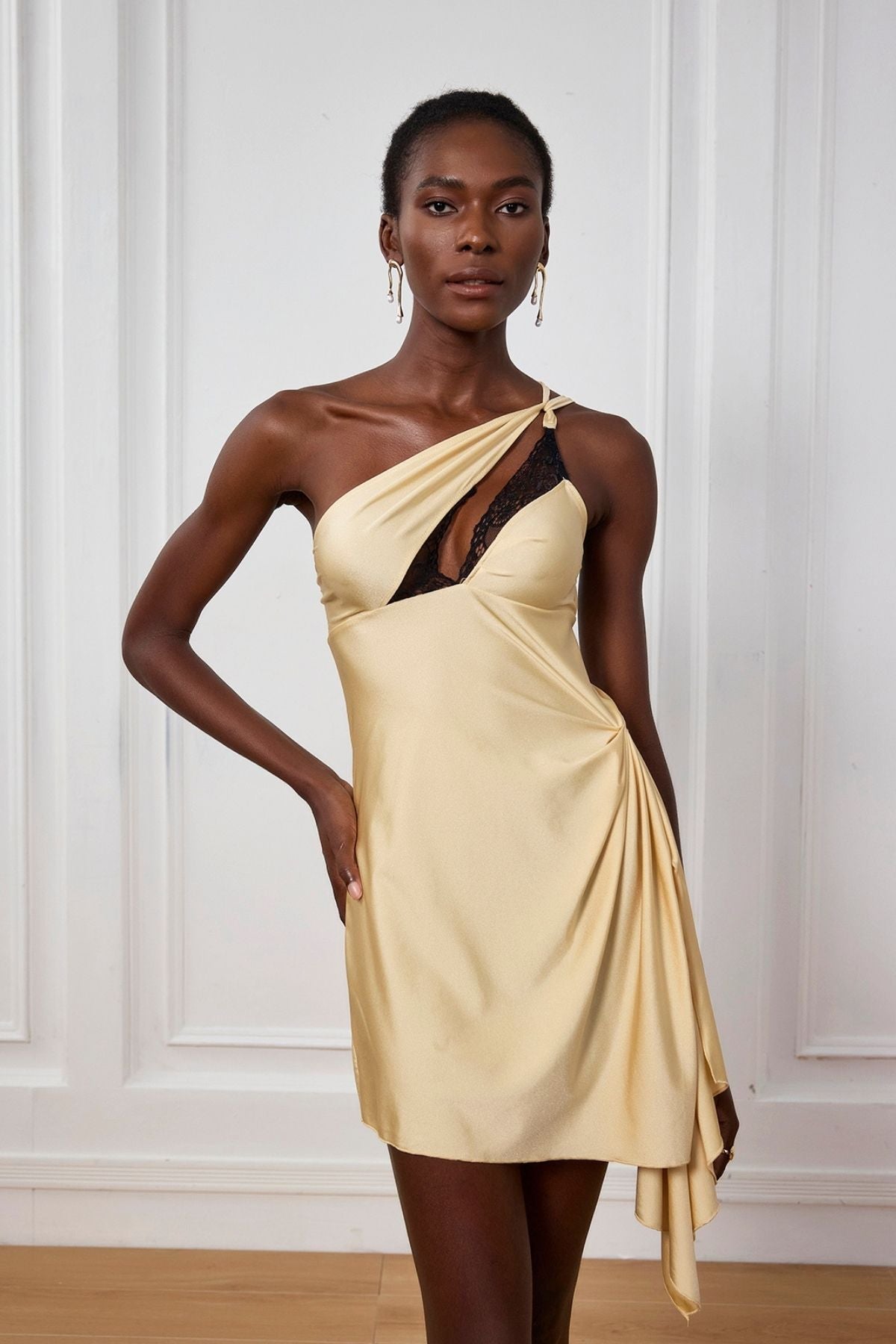 This Keily Lace Single Shoulder Ruch Mini Dress boasts exquisite lace craftsmanship and a flattering single shoulder design. The ruched detailing adds a touch of feminine elegance. Made with high-quality materials for a comfortable and stylish fit. Perfect for any special occasion or night out.