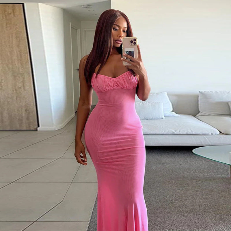 Elevate your fashion game with our Ladies' Mesh Suspender See-through Slim-fit Dress. It's the perfect combination of style. comfort. and versatility. making it an essential addition to your wardrobe. Choose your size and preferred color. and step out with confidence. turning heads wherever you go