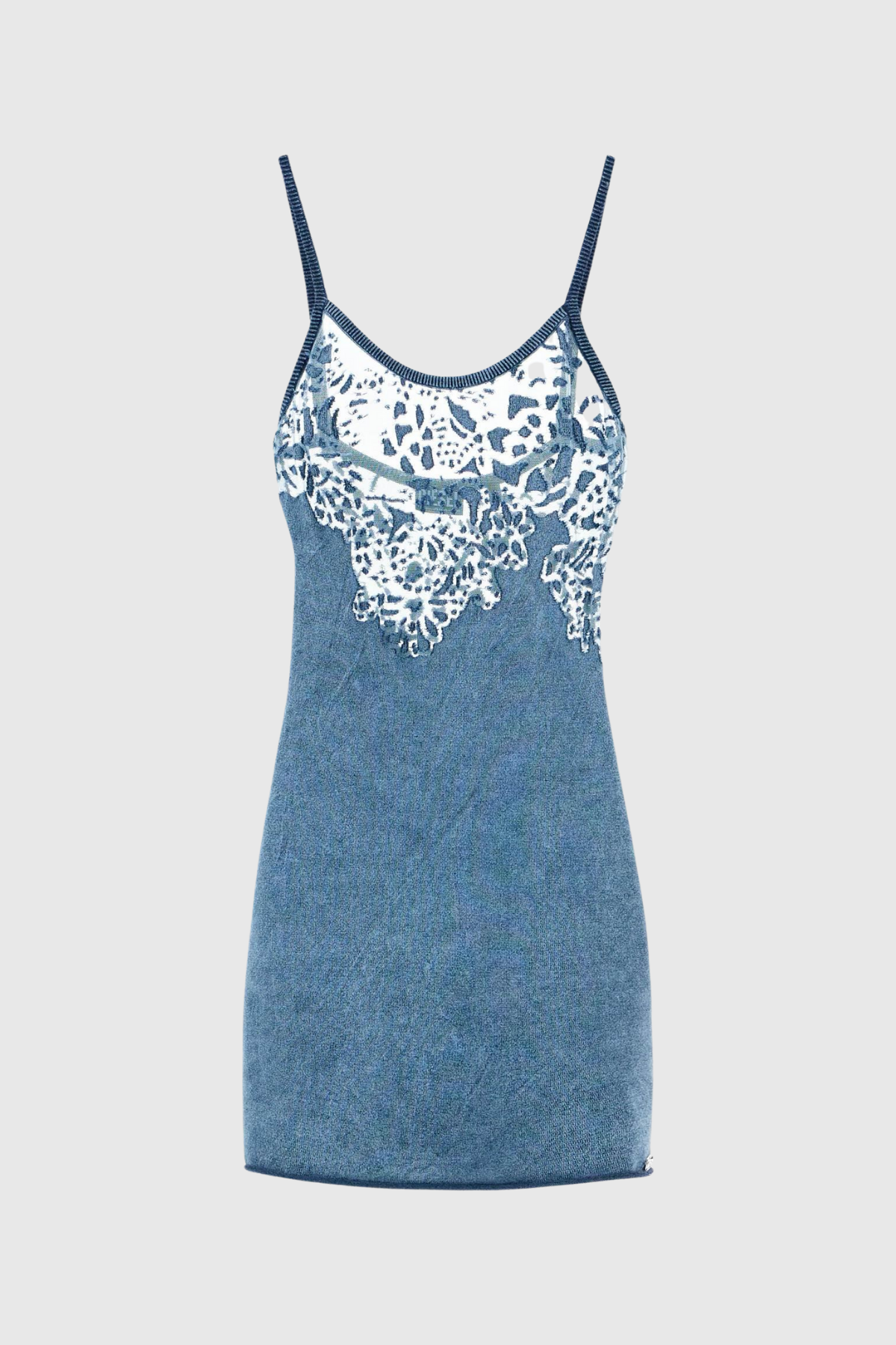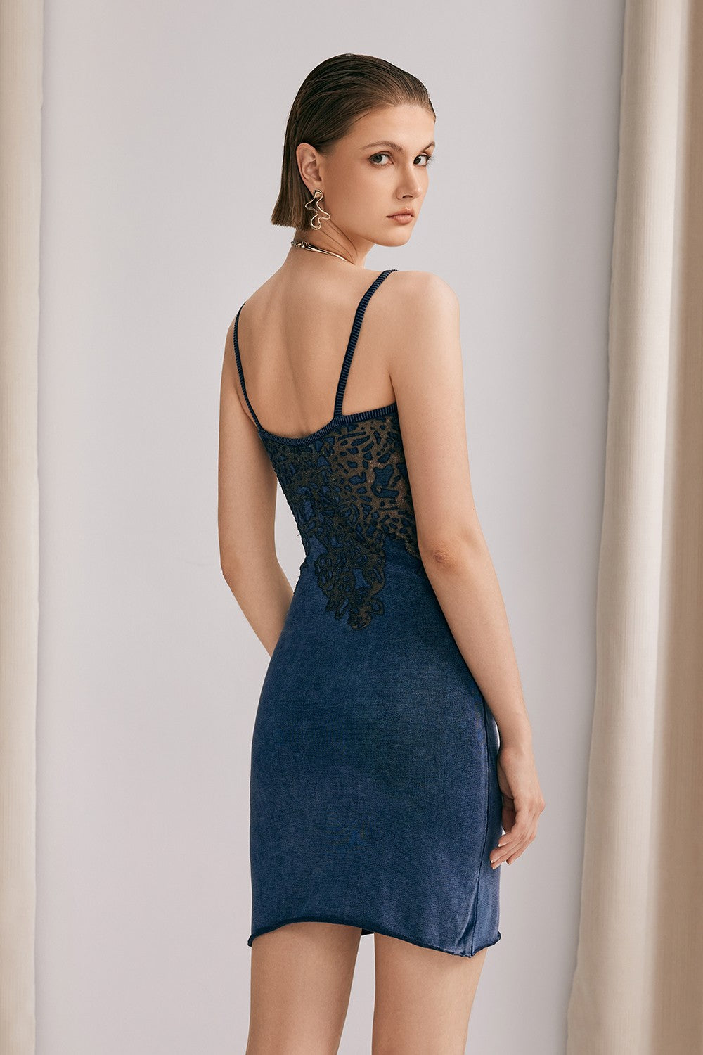 Introducing the Miley Lace Spaghetti Mini Dress. a stunning addition to any wardrobe. Crafted with intricate lace patchwork and delicate spaghetti straps. this mini dress exudes elegance and sophistication. Perfect for any occasion. its timeless design offers a flattering fit for all body types. Elevate your style with the Miley Lace Patchwork Spaghetti Mini Dress.