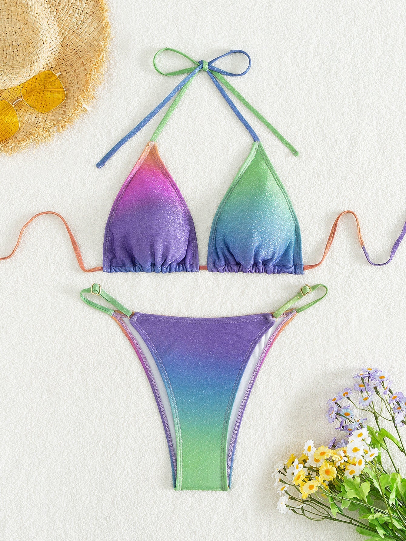 Multicolor Illusion Sexy Backless Bikini