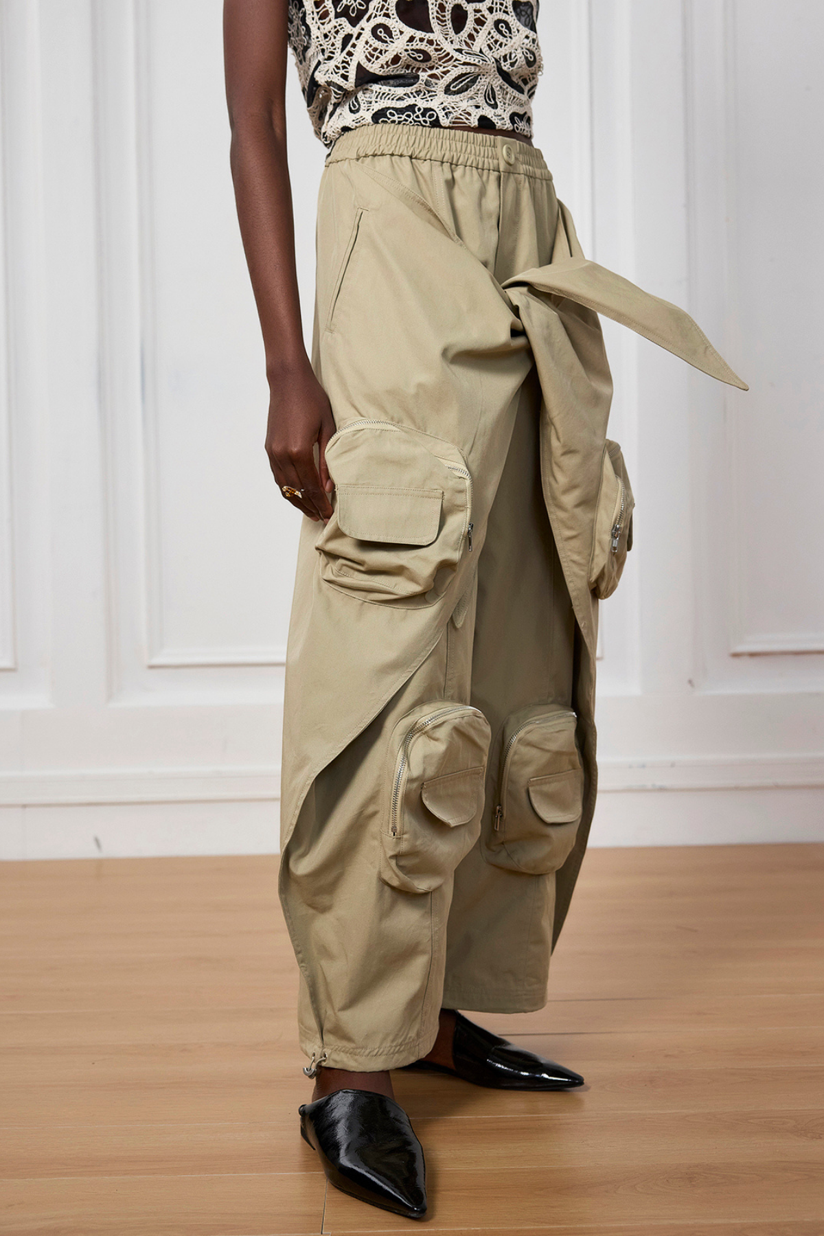 Introducing the Natasha Pocket Lace Up Cargo Pants. a must-have for any fashion-forward individual. These pants are equipped with convenient pockets and a stylish lace-up design. perfect for adding an edgy touch to any outfit. Made with high-quality materials. these pants provide both comfort and durability for all-day wear. Upgrade your wardrobe with these versatile and chic cargo pants.