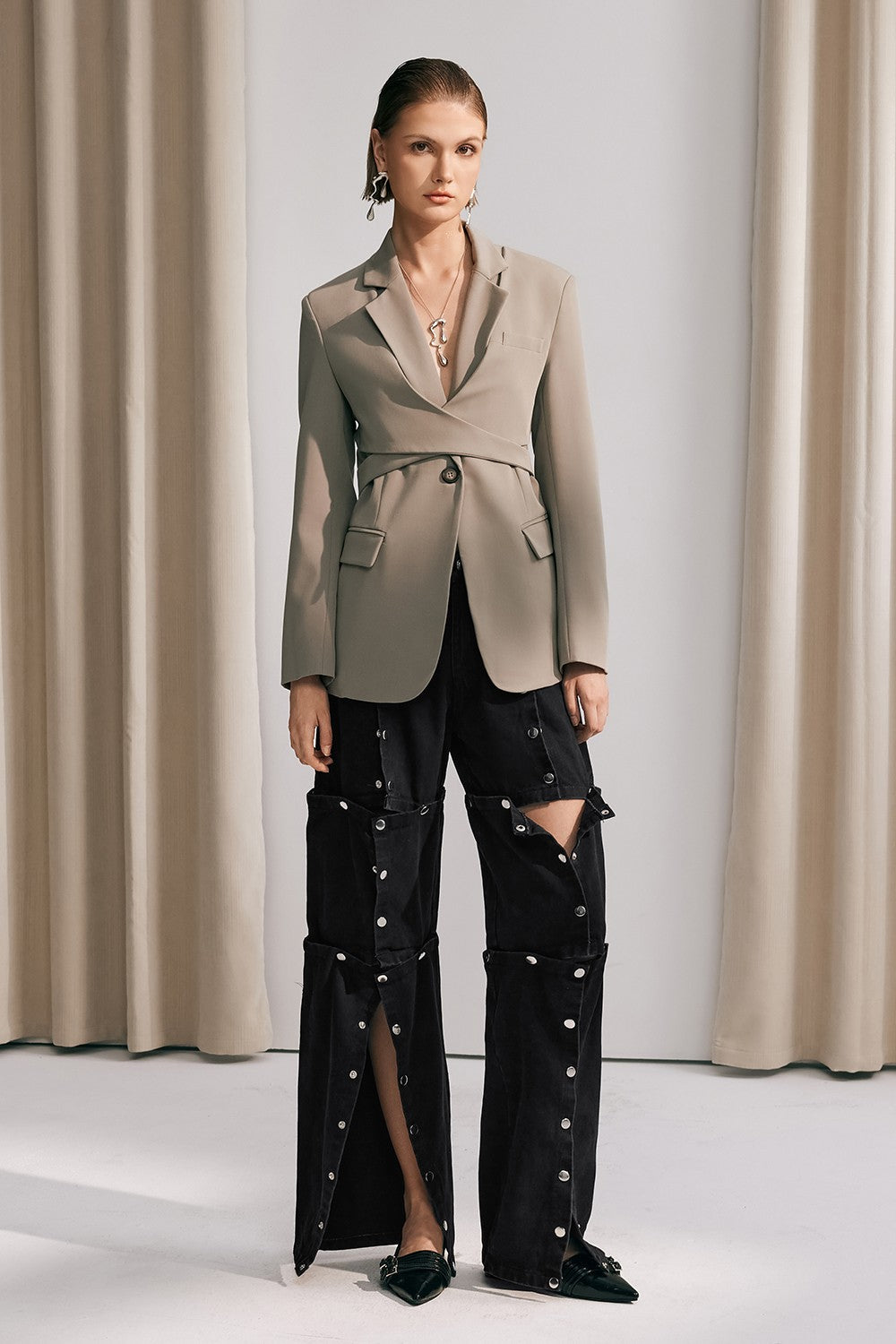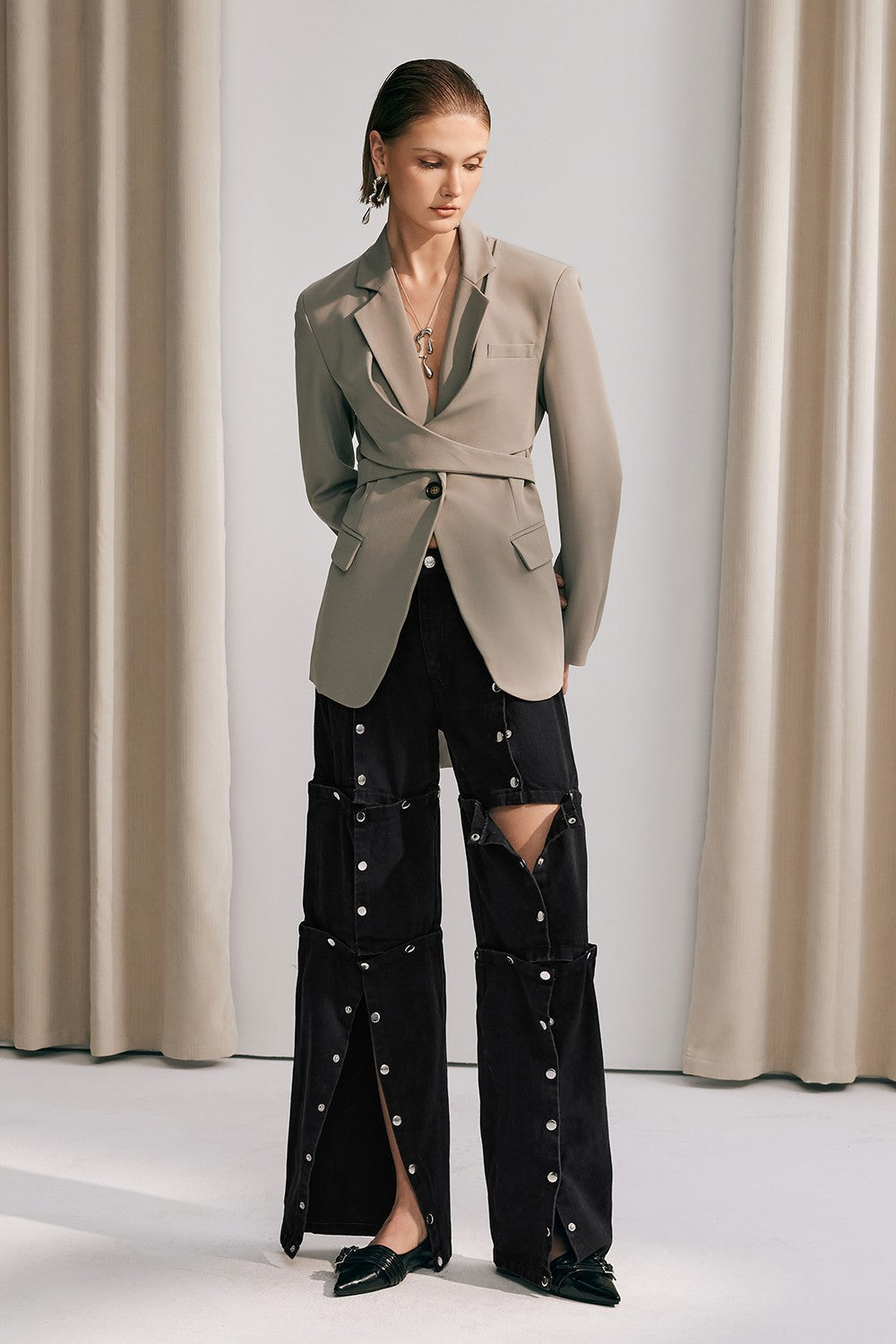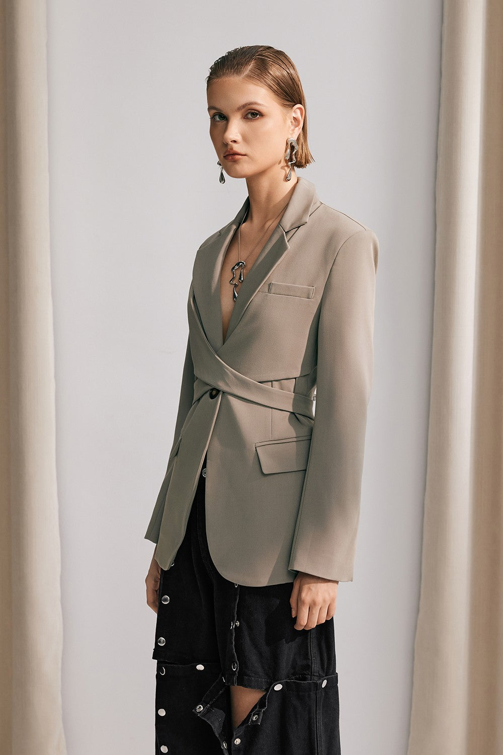 The Nieve Cross Lace Up Plunge Blazer is a sophisticated piece that adds a touch of elegance to any outfit. The lace-up detailing and plunging neckline create a flattering silhouette. while the cross lace design adds a unique and stylish touch. This blazer is perfect for both formal and casual occasions. making it a versatile addition to your wardrobe.