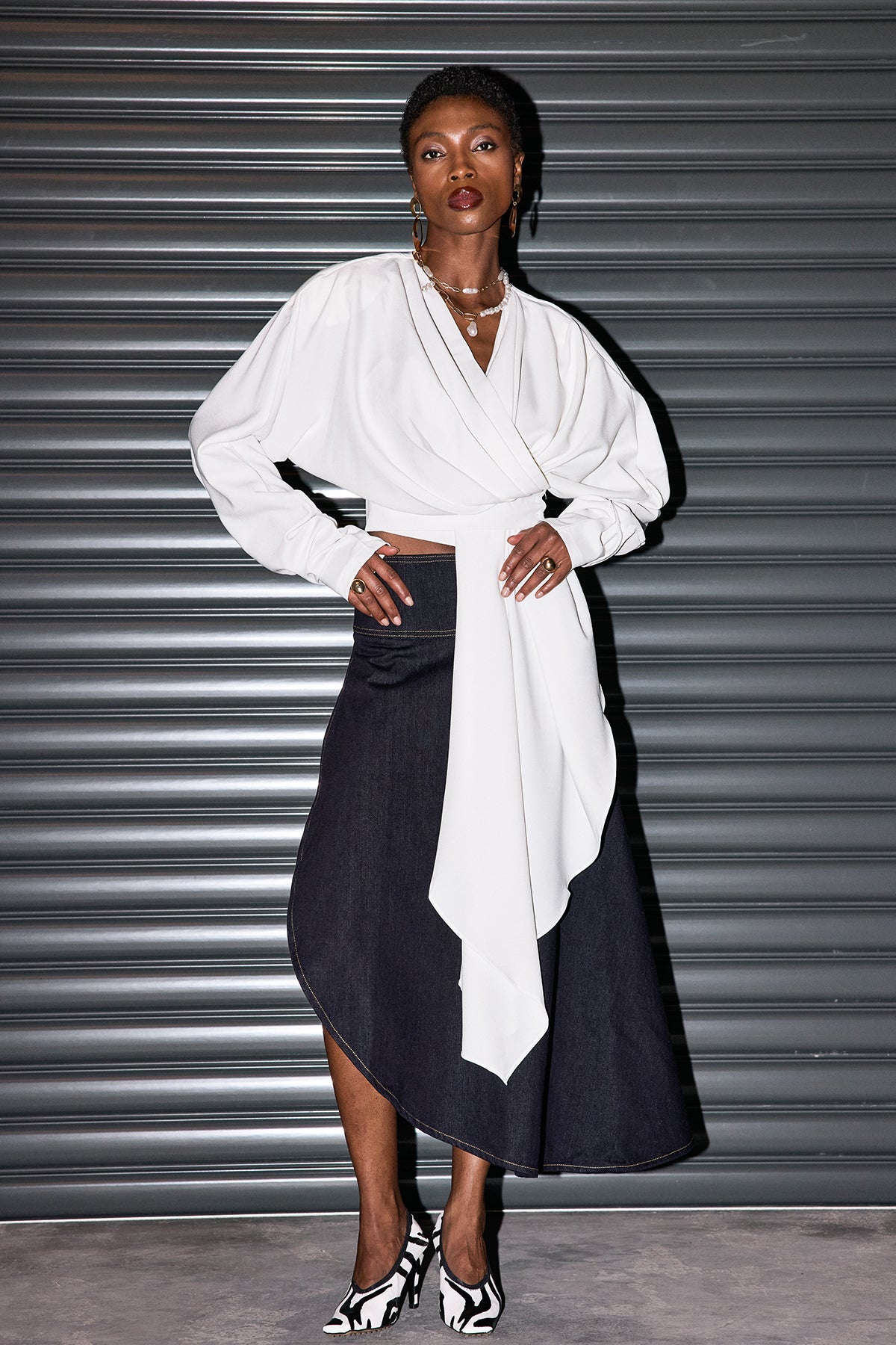 Step up your style game with the Penelope Denim Ruffle Asymmetric Skirt. This unique and trendy piece features a ruffled hemline and an asymmetric design. adding a touch of playful elegance to your outfit. Crafted with high-quality denim. this skirt promises both comfort and durability. Elevate your wardrobe with this must-have skirt.