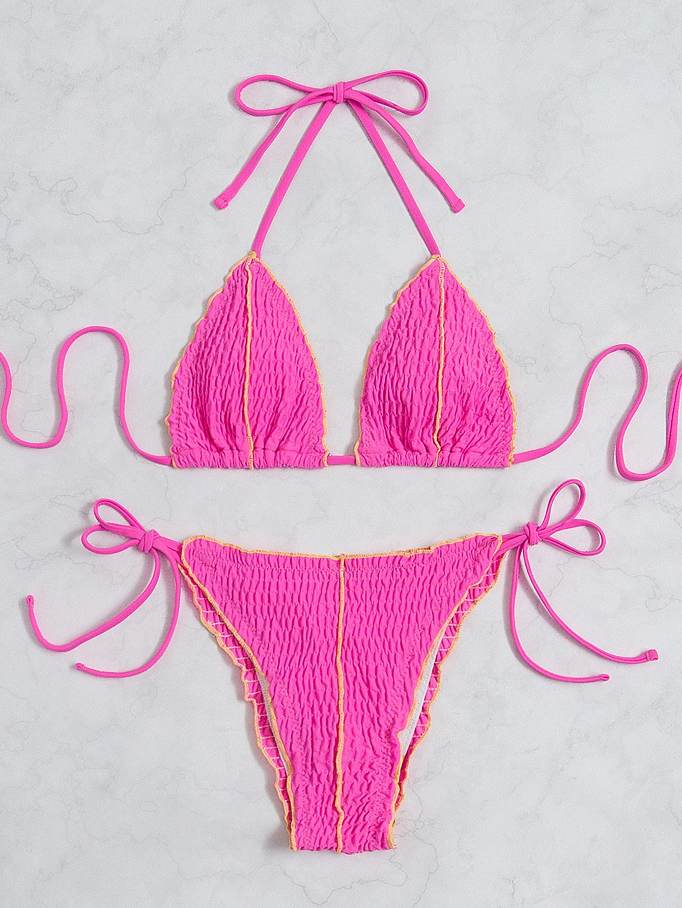 Pleats Solid Color Sexy Bikini