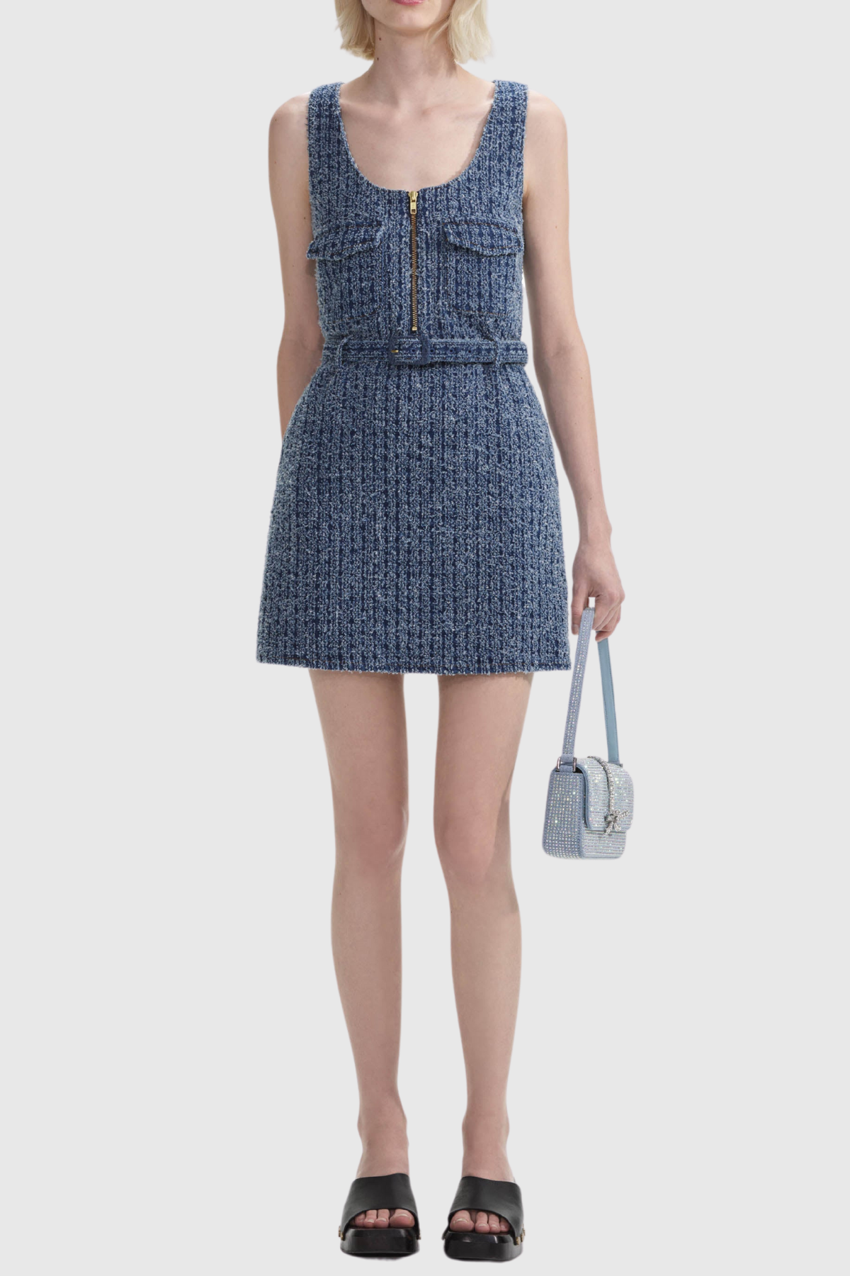 Introducing the Rayne Zipper Buckle Sleeveless Mini Dress - the perfect combination of style and comfort. Crafted with a zipper and buckle closure. this dress offers a sleek and secure fit. The sleeveless design is perfect for warmer days. making it a versatile addition to your wardrobe. Elevate your look with this must-have dress.