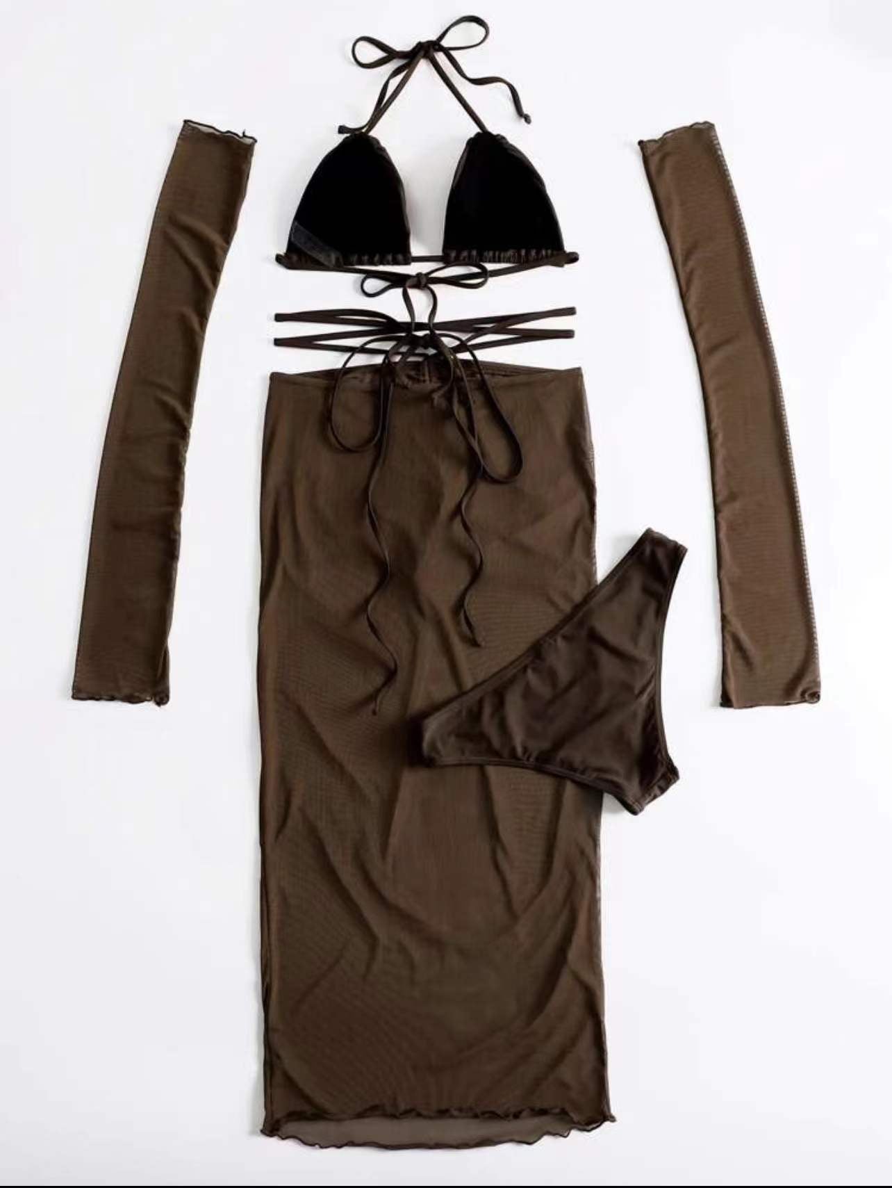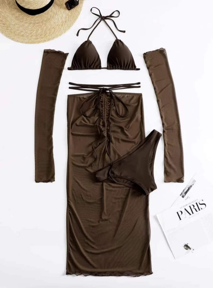 Rope Strap Mesh Three-piece Swimsuit Bikini
