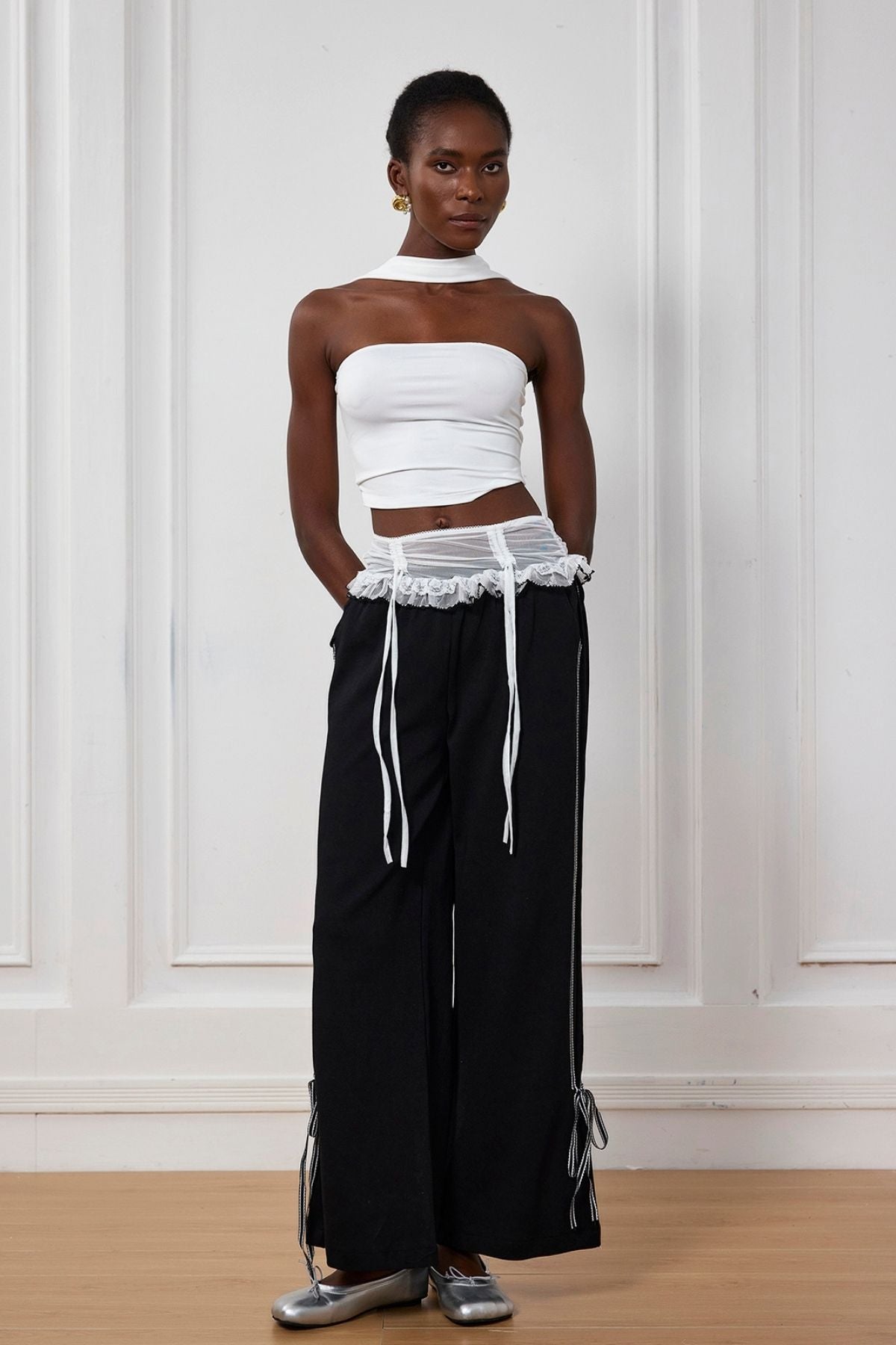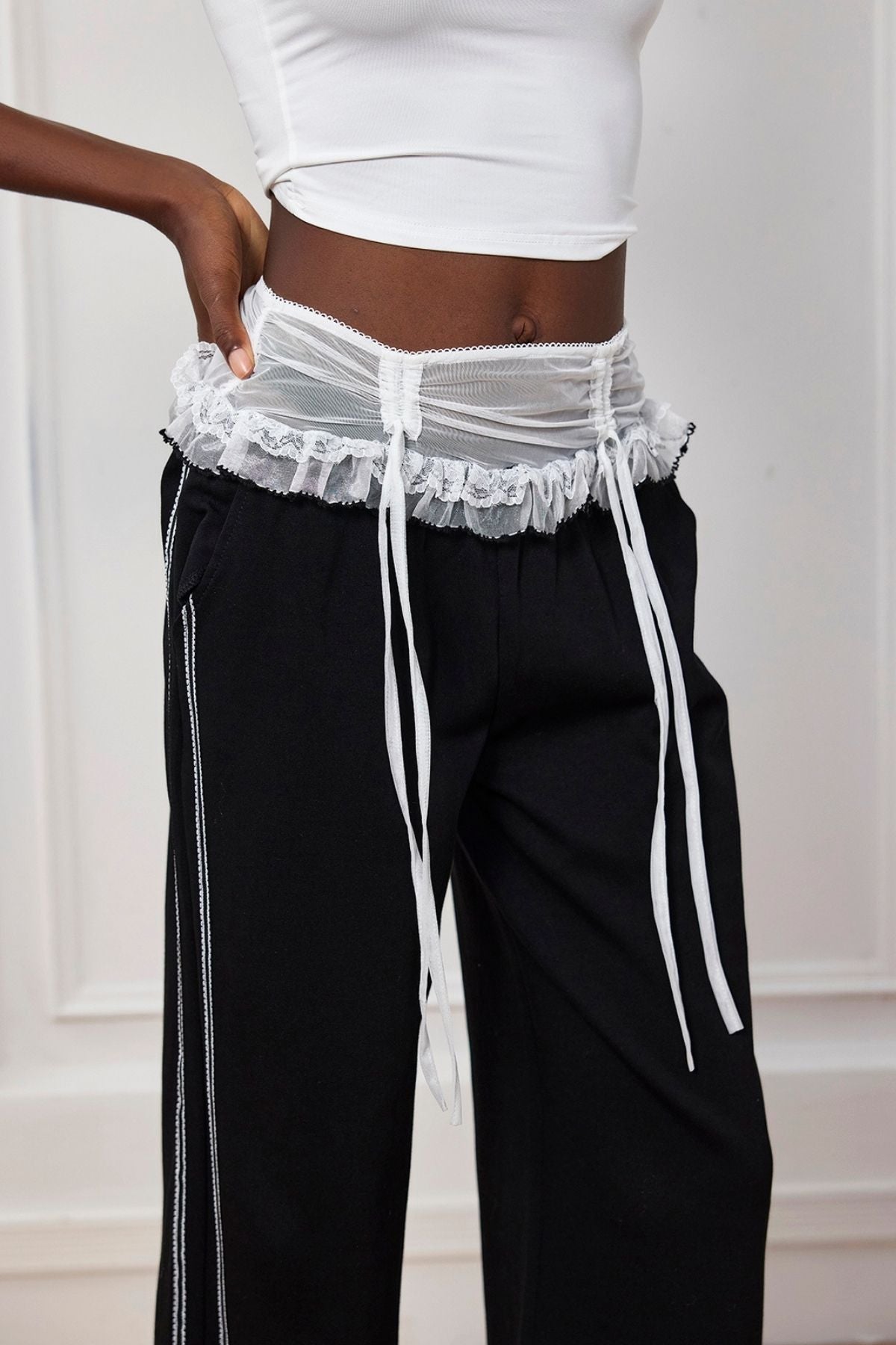 Experience the perfect blend of style and comfort with our Sariah Lace Bow Pants. Made with high-quality materials and delicate lace detailing. these pants offer a unique and elegant look. The patchwork design adds a touch of creativity. making these pants a must-have for any fashion-forward wardrobe.