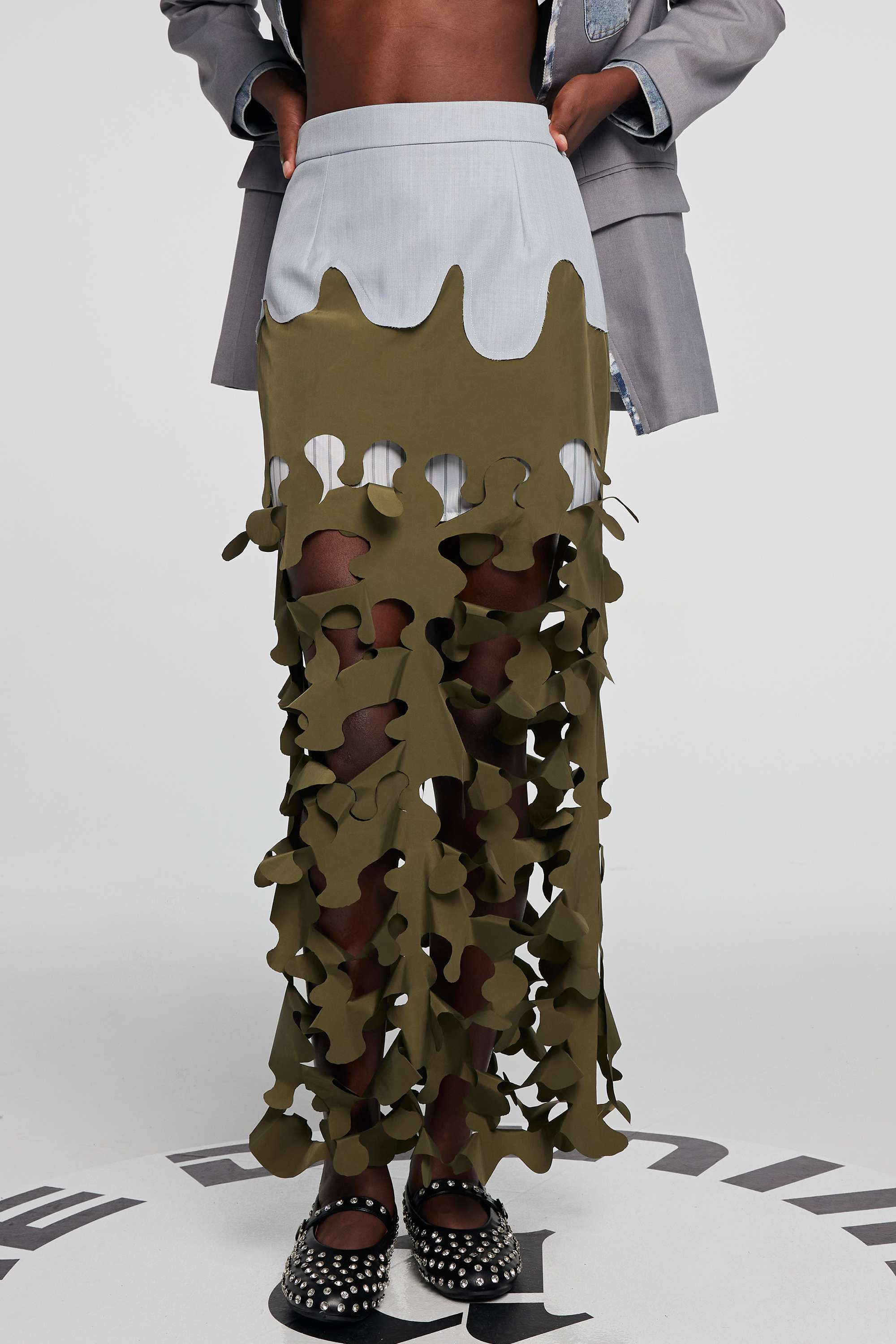 This Selena Asymmetric Cutout Skirt is designed with a unique asymmetrical cutout and comes in a stylish green color. Its modern design adds a touch of edginess to any outfit. Made from high-quality materials. this skirt is comfortable to wear and perfect for any occasion.