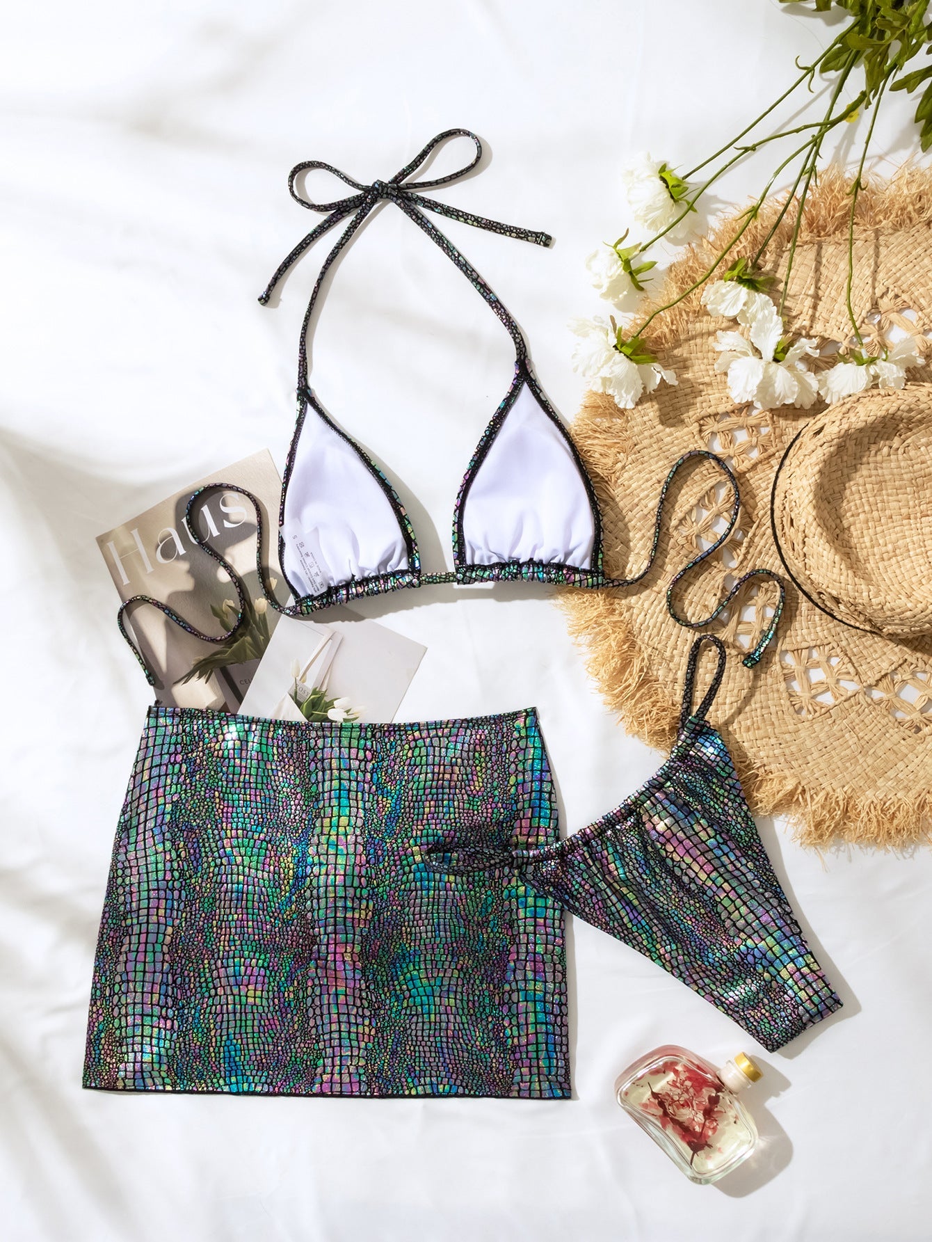 Snake Skin Bronzing Fabric Magic Color Three-piece Bikini