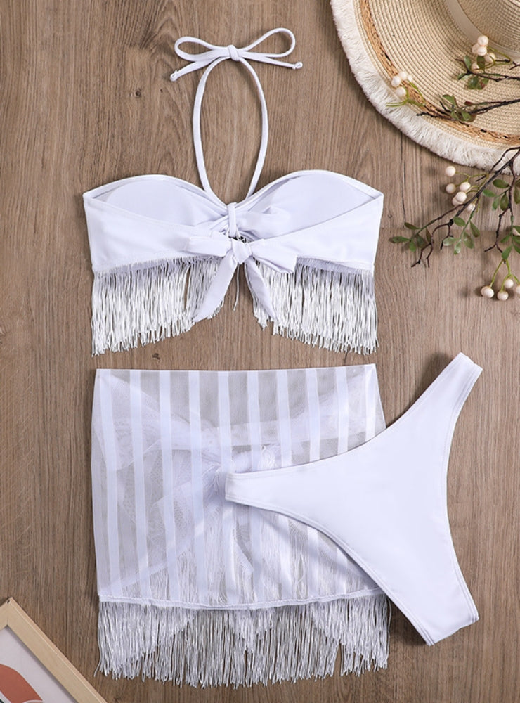 Tassel Sling Mesh Three-piece Swimsuit Bikini