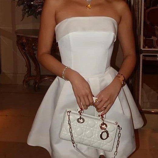 Introducing Chloe's A-Line Sleeveless Tube-Top Solid Color Mini Dress. a perfect embodiment of minimalist elegance with a playful twist. Crafted for those who love to make a statement with understated style. this dress is ideal for a variety of occasions. from high-end cocktail parties to casual daytime outings.