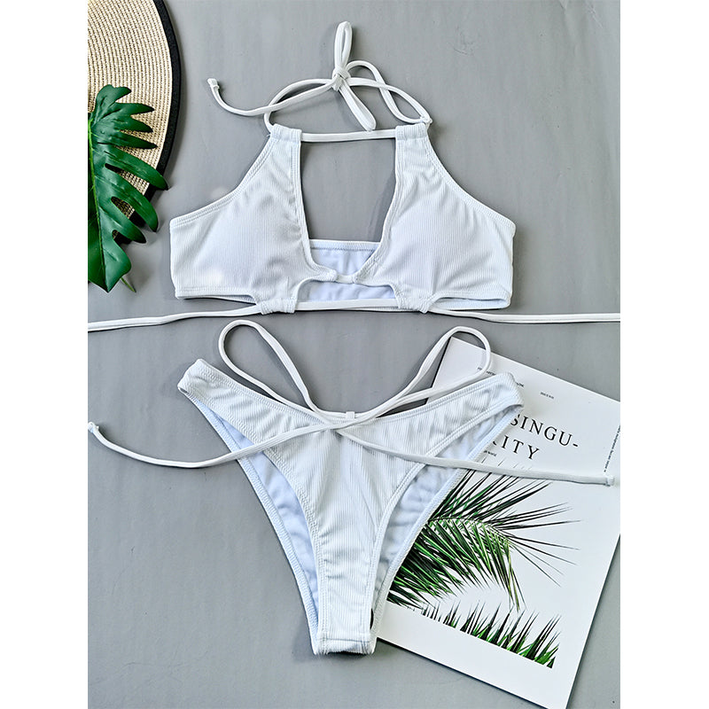 Step into summer with confidence and style in our stunning white bathing suit String Lace Up Bathing Suit Swimwear. The intricate lace-up detailing adds an extra touch of allure to this classic design. ensuring you stand out on every beach or poolside. Made from high-quality. durable fabric. this swimsuit offers a comfortable fit while providing excellent support. The elegant white color is universally flattering and exudes a sophisticated yet playful vibe. making it the perfect choice for any summertime adventure.