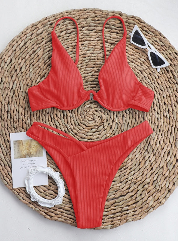 Step into the sunshine this season with the new Pink Ribbed Cropped Bikini Set from Lilacoo. This super cute bikini top is crafted from terry ribbed fabric and features adjustable straps. a scoop neckline. and a back hook closure.Complete your look with the new Ribbed High Waisted Bikini Bottom. This super cute bikini bottom is crafted from terry ribbed fabric and features a high-rise fit. a high-cut leg. and cheeky seat coverage.