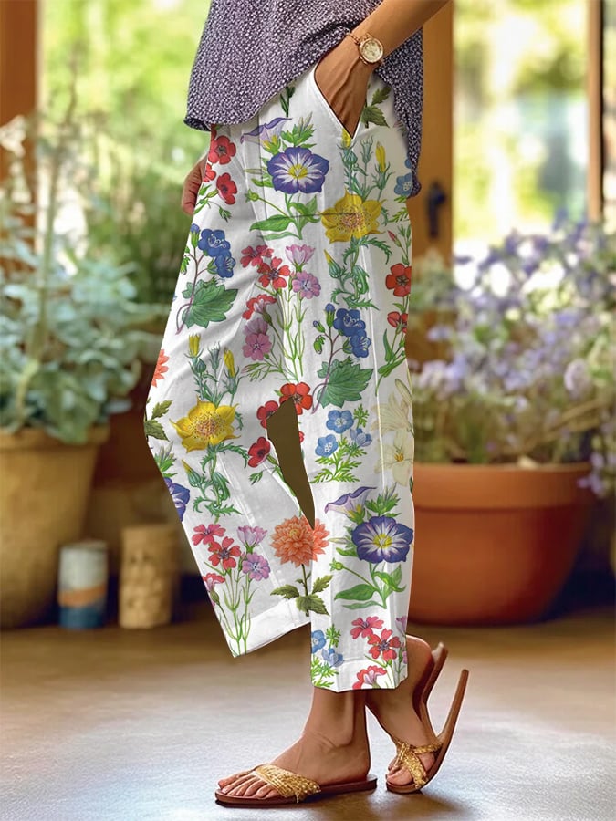 Women's Art Floral Loose Casual Pants (With Pockets)