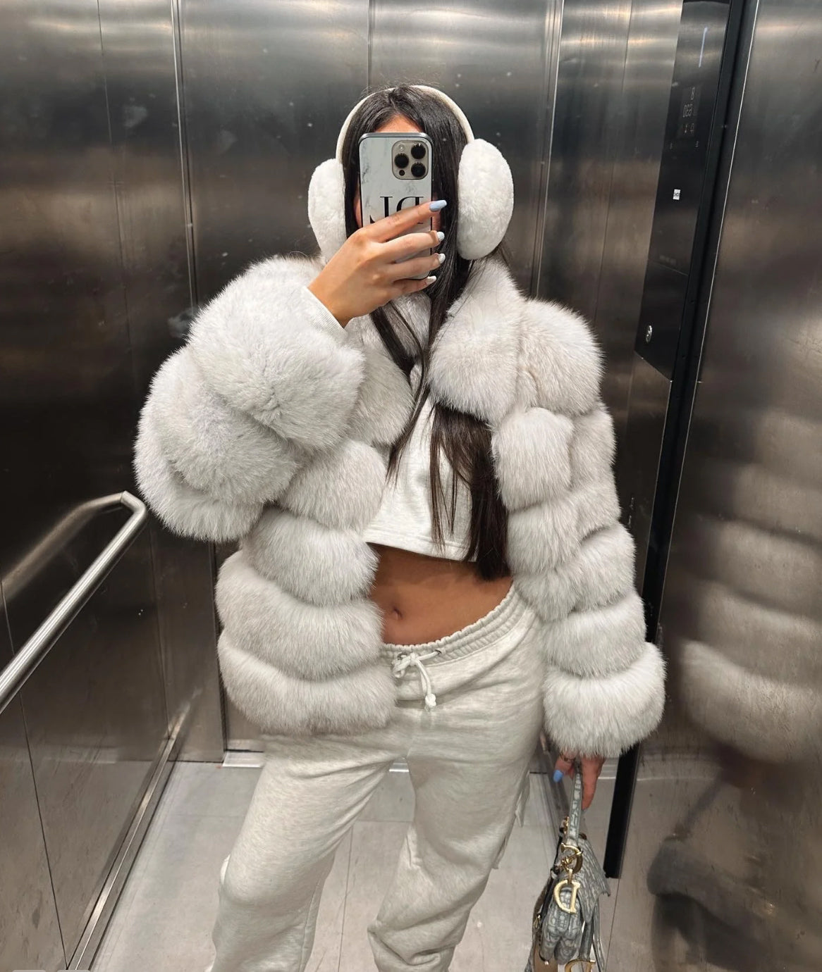 - Shell: Artificial fur fabric. fox fur accents