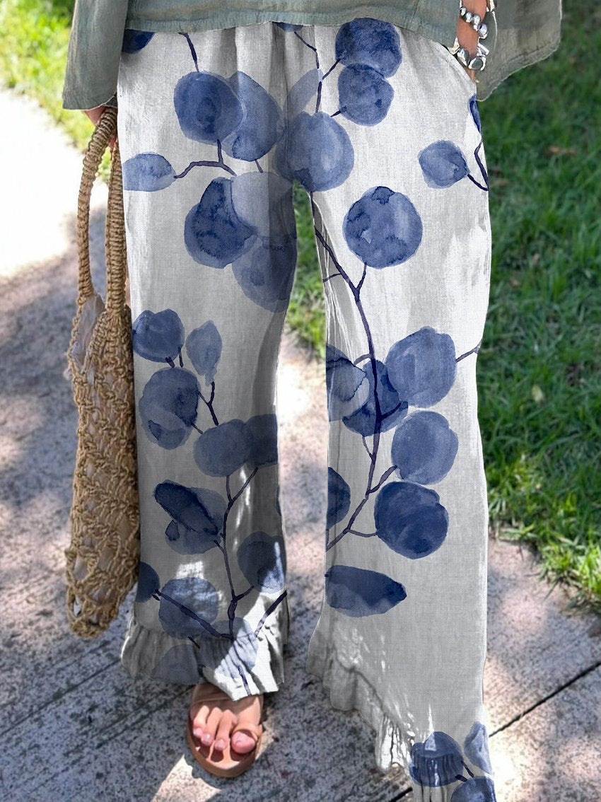 Women's Retro Botanical Floral Printed Cotton And Linen Casual Pants